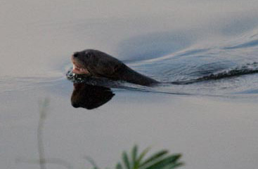 Nabij het Pantanal Wildlife Center woont al jarenlang een reuze otterfamilie die je van heel dichtbij kunt bewonderen uitgekozen. Maar met het hoge water heb je geen zandbanken, grote delen van het bos staan onder water, dus de otters volgen de vissen het bos in. We hebben er wel enkele gezien, maar alleen van wat verder weg en alleen de kop uit het water. Ook de Tapirtoren bij deze lodge waar je elke avond tapirs zou zien, stond nou troosteloos in het water. Maar bij de 1e lodge hebben we gelukkig nog bij een nachtexcursie een tapir mogen zien, die plots de weg overstak, net voor onze auto.